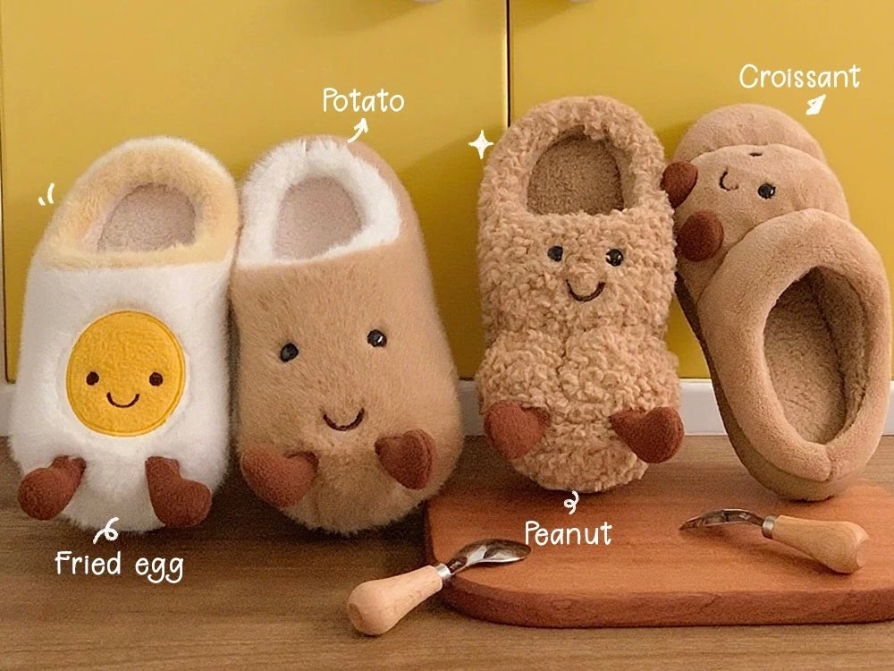 Potato Fuzzy Scuff Slippers Soft Comfy Memory Foam Non-slip Indoor House Shoes